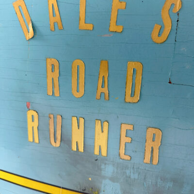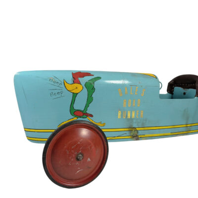 Originaler Soap Box Derby Racer, getauft auf den Namen „Dale’s Road Runner“. Dieses Objekt ist ein herausragendes Beispiel für die Automobilia-Volkskunst der Mitte des 20. Jahrhunderts.
