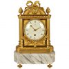 Eleganter Vitrinen-Halbschrank im Louis XVI-Stil, gefertigt aus Mahagoni in der 2. Hälfte des 19. Jh.: gerader, hochrechteckiger Korpus aus Mahagoni auf vier konischen Rechteckfüßen, Front und Seiten mit Glaseinsätzen. Innen mit Glasborden ausgestattet, Rückwand mit violetter antiker Tapete verkleidet. Mahagoniplatte mit umlaufenderBronzemontur in Form von Draperien als oberer Abschluß. Reiche neoklassizistische Bronzeverzierungen.